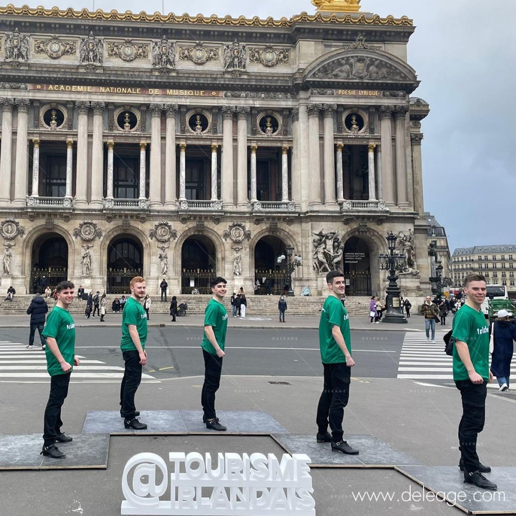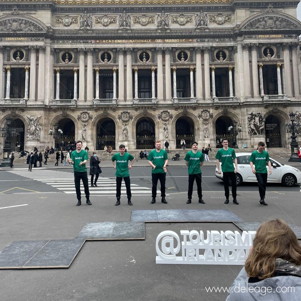 C’est à l’occasion du match de rugby FRANCE IRELAND que l’office du tourisme Irlandais décide d’organiser un street marketing place de l’Opéra !