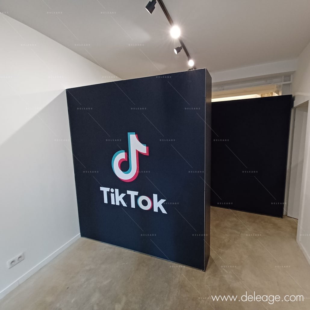 Logo en volume, cloison, photocall et fond de scène sont les éléments de décoration et d’aménagement que nous installons le plus souvent.