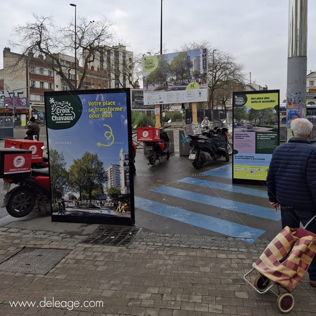 Montreuil, ville en pleine mutation, s’apprête à dévoiler ses projets d’aménagement ambitieux. Pour communiquer efficacement avec ses habitants et les informer des transformations à venir, la ville a fait appel à l’Agence Médias conseil. C’est DELEAGE, expert en solutions d’affichage temporaire, qui a été choisie pour mettre en place une exposition urbaine inédite dans le quartier de la Croix de Chavaux.