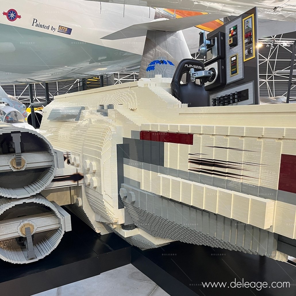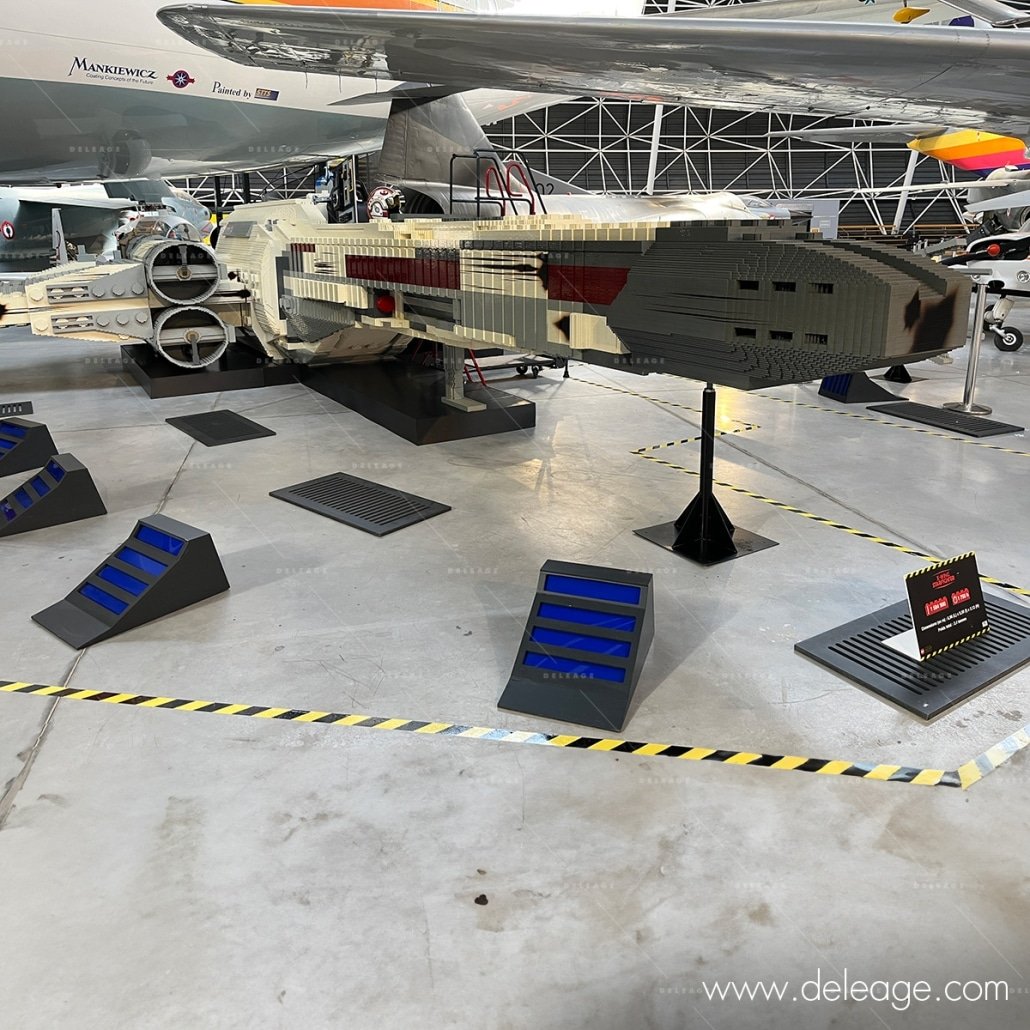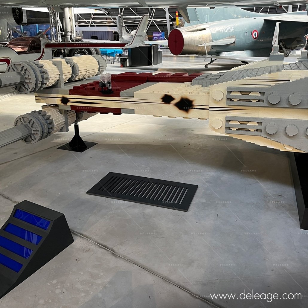 Le Musée Aéroscopia de Toulouse Blagnac abrite une pièce maîtresse impressionnante : un X-Wing grandeur nature, entièrement construit en briques LEGO®, fruit d’une collaboration entre EPICURE STUDIO© et HISTOIRE DE BRIQUES. Mais une œuvre d’art aussi ambitieuse nécessitait une touche finale pour parfaire l’illusion et plonger le visiteur au cœur de l’univers Star Wars. C’est là qu’intervient DELEAGE, sollicité pour apporter cette finition impeccable.