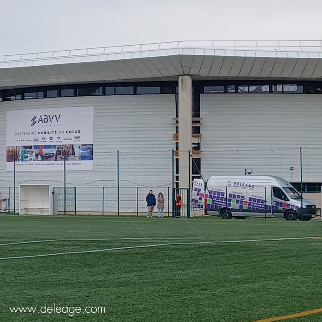 Aujourd’hui, c’est dans ce contexte que DELEAGE intervient pour effectuer la pose d’un décor XXL sur la façade du stade DIAGANA situé en région parisienne.