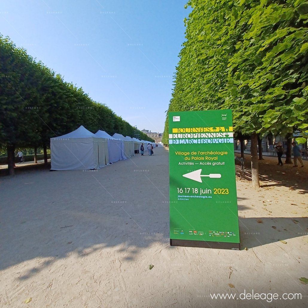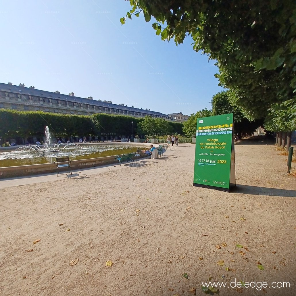 DELEAGE intervient sur cet événement pour la réalisation de la signalétique informative et directionnelle située à l’extérieur dans les allées du jardin et la cour intérieure.