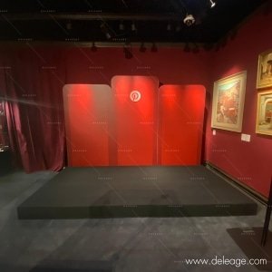 Le fond de scène, pièce maîtresse de l’événement, a également été transformé. Grâce à une structure T3 habillée de PVC imprimé, il a été conçu pour s’adapter parfaitement à sa forme. Composée de trois éléments sur charnières, cette structure a apporté une dynamique visuelle au spectacle, captivant l’attention de tous les invités. A fin d’animer l’espace,   une roue de loterie sur-mesure et un support de gâteau géant ont été installés de part et d’autre de la scène.