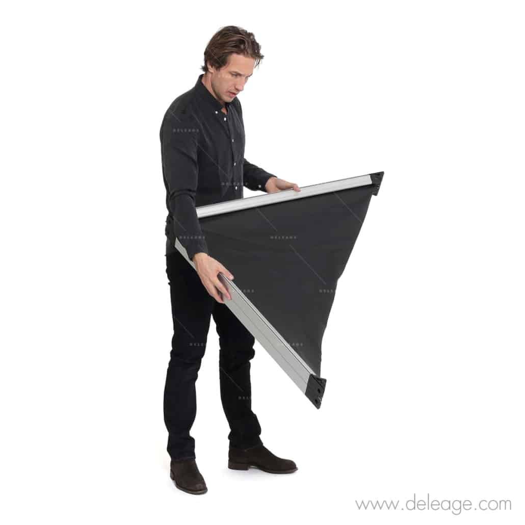 Chaque cadre peut être équipé de son propre tissu imprimé pouvant se replier sur lui-même pour pouvoir être transporté dans un simple sac de transport.