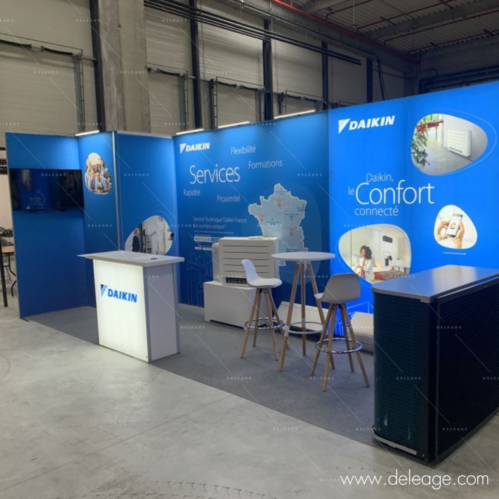DAIKIN a choisi nos stands HLINE pour la qualité de l’image mais aussi pour la modularité du système sur les différents emplacements car selon les salons, la dimension et les configurations peuvent varier fortement.