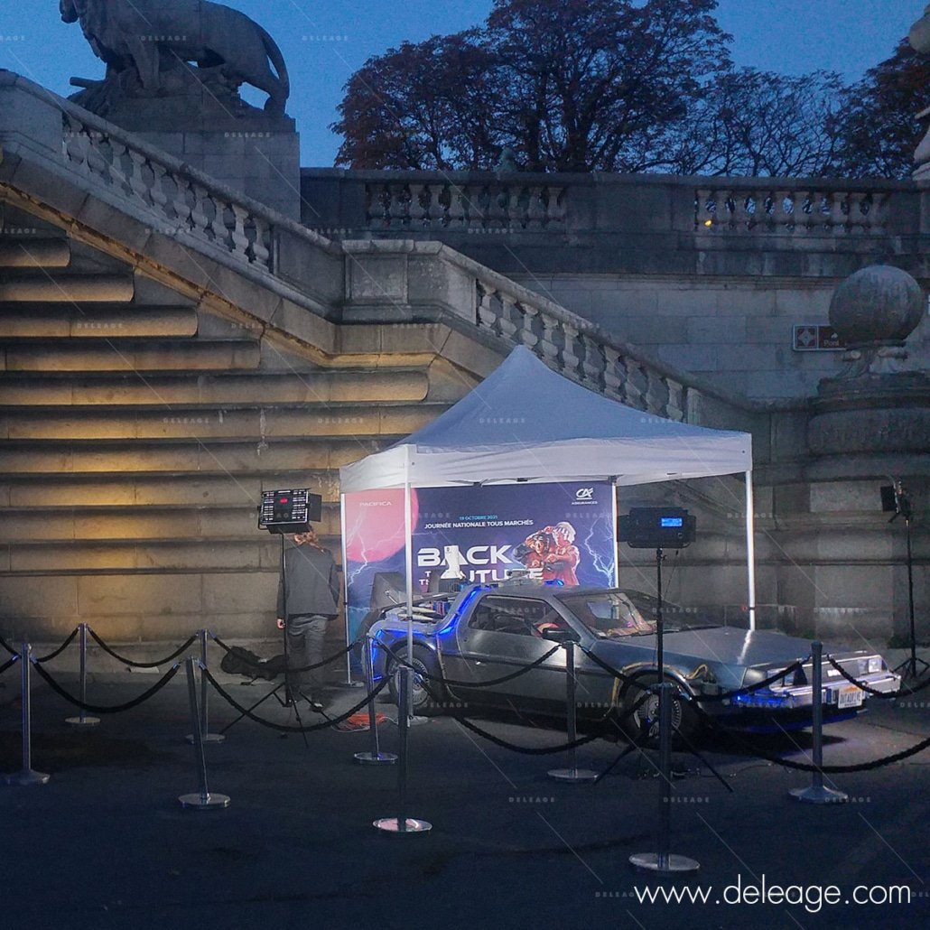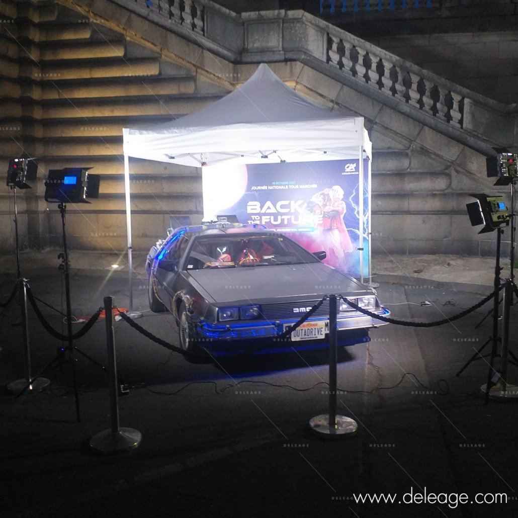 La société Vénise Groupe a missionné DELEAGE afin de trouver une solution pour protéger la célèbre Delorean de Retour vers le futur pour un événement situé sous le pont Alexandre III à Paris.