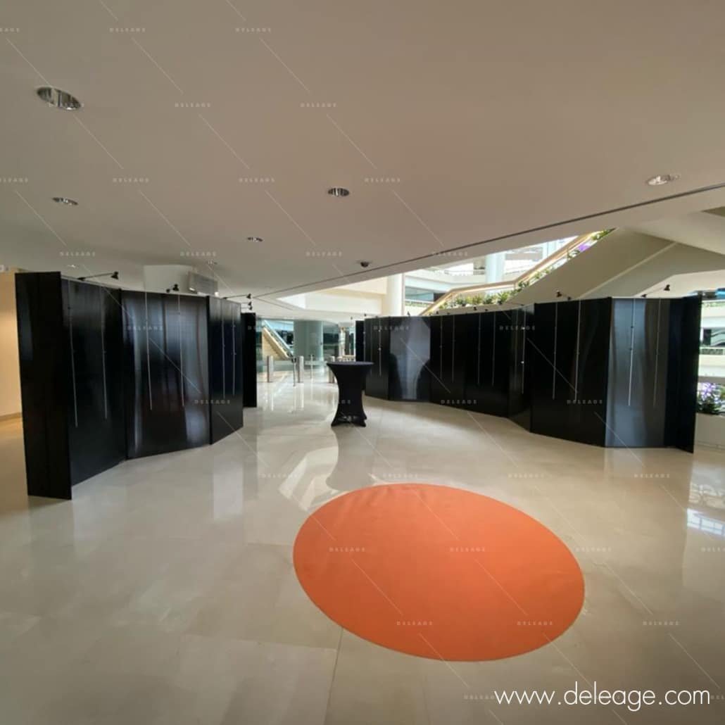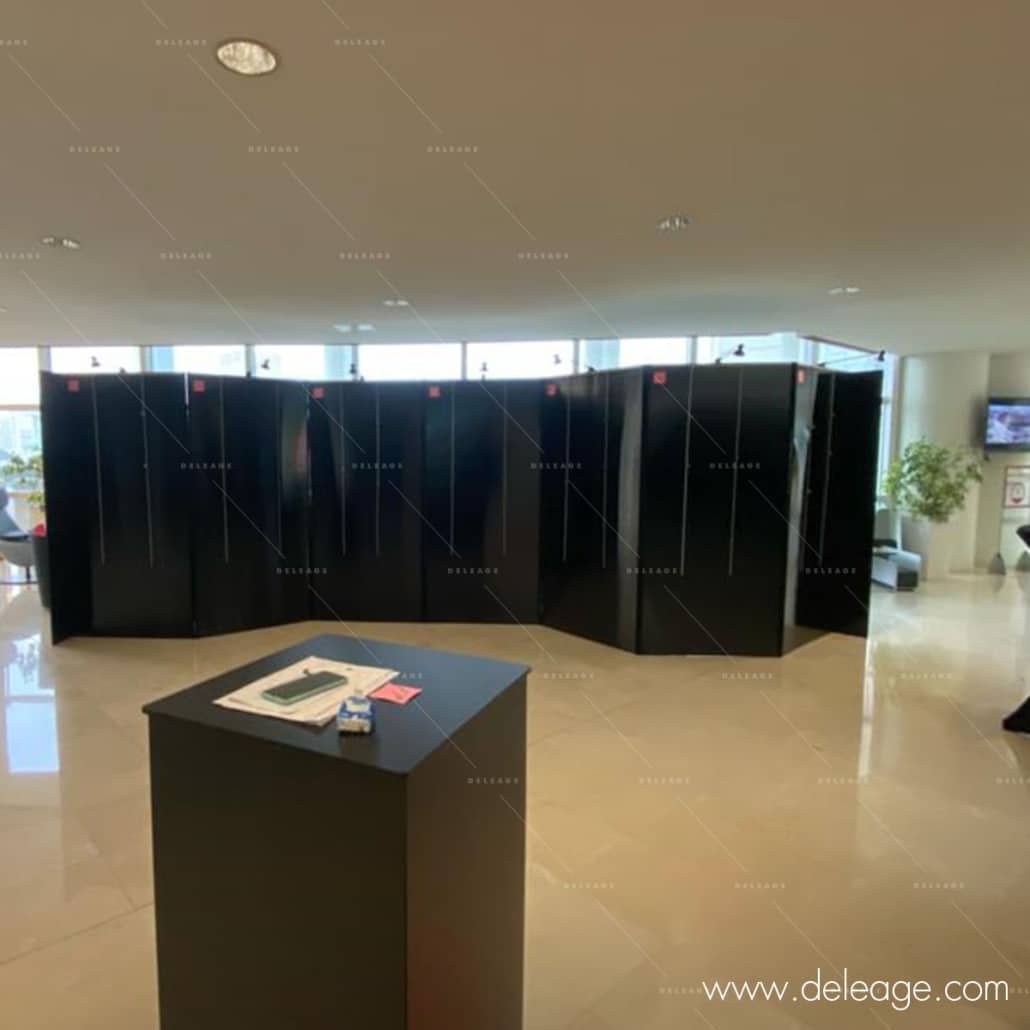 Le défi était de concevoir un espace d’exposition à la fois esthétique et fonctionnel. C’est ainsi que DELEAGE a pris en charge l’aménagement de la salle, en se conformant à un cahier des charges précis. L’objectif était de mettre en place des cloisons autoportantes modulaires, proposées à la location et permettant la suspension de tableaux encadrés de différentes dimensions. Grâce à son savoir-faire reconnu, DELEAGE a pu proposer une solution sur mesure, adaptée au budget.