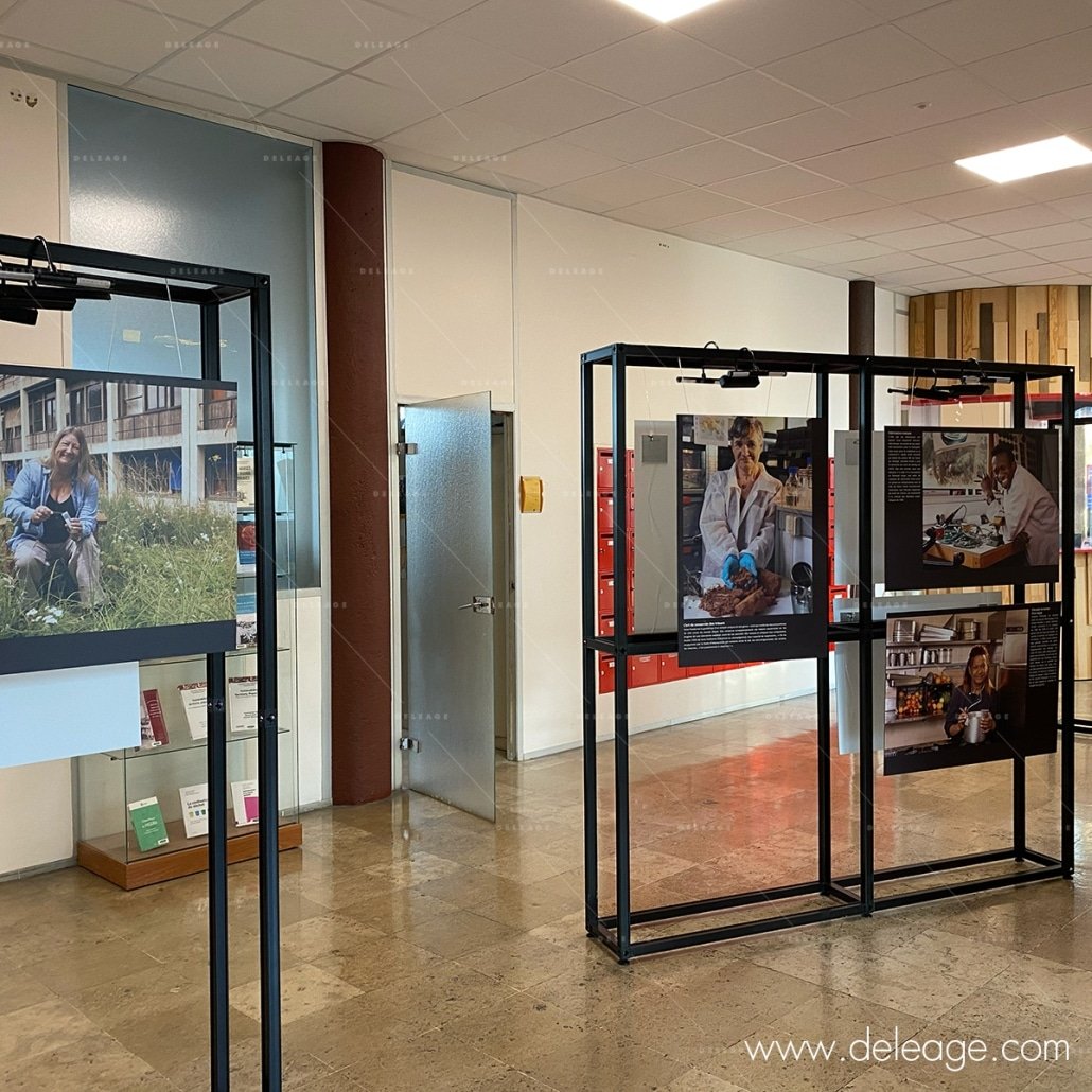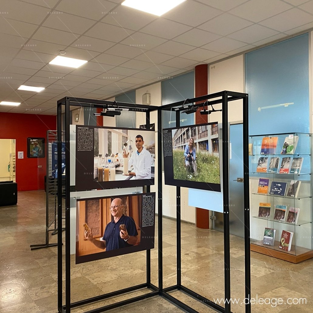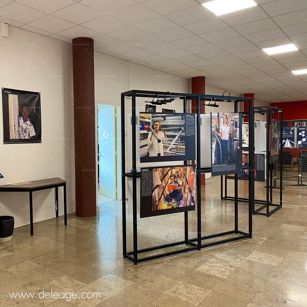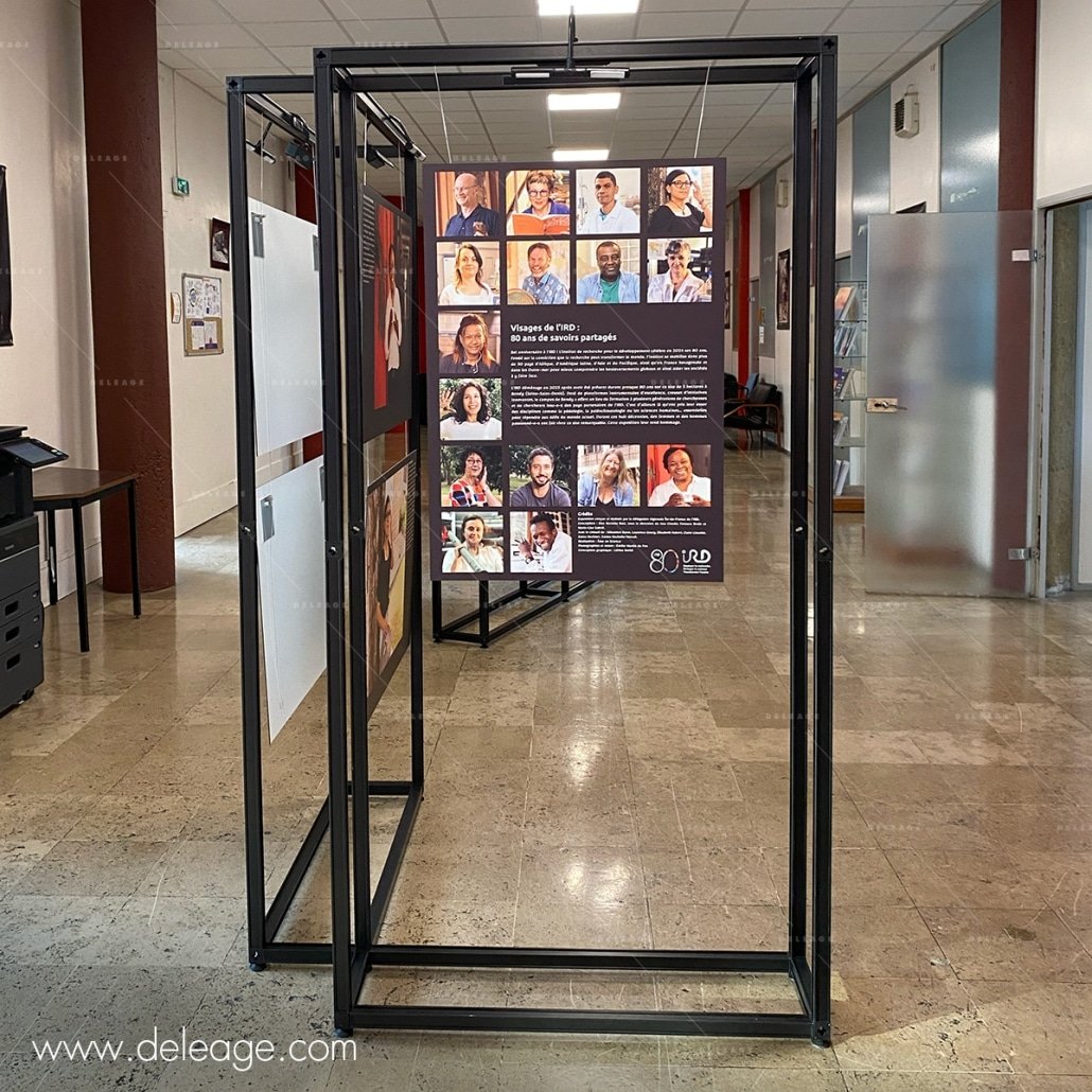 Un autre élément clé de l’exposition est l’impression des visuels. Chaque module sera agrémenté de visuels imprimés sur panneaux rigides et installé en suspension grâce à des câbles et des fixations réglables en hauteur.