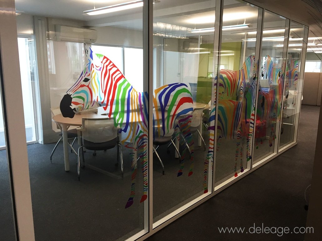 En effet, autant une peinture murale peut être endommagée avec un décor adhésif, autant, la vitrophanie ne présente aucun risque de dégradation pour le support vitré.
