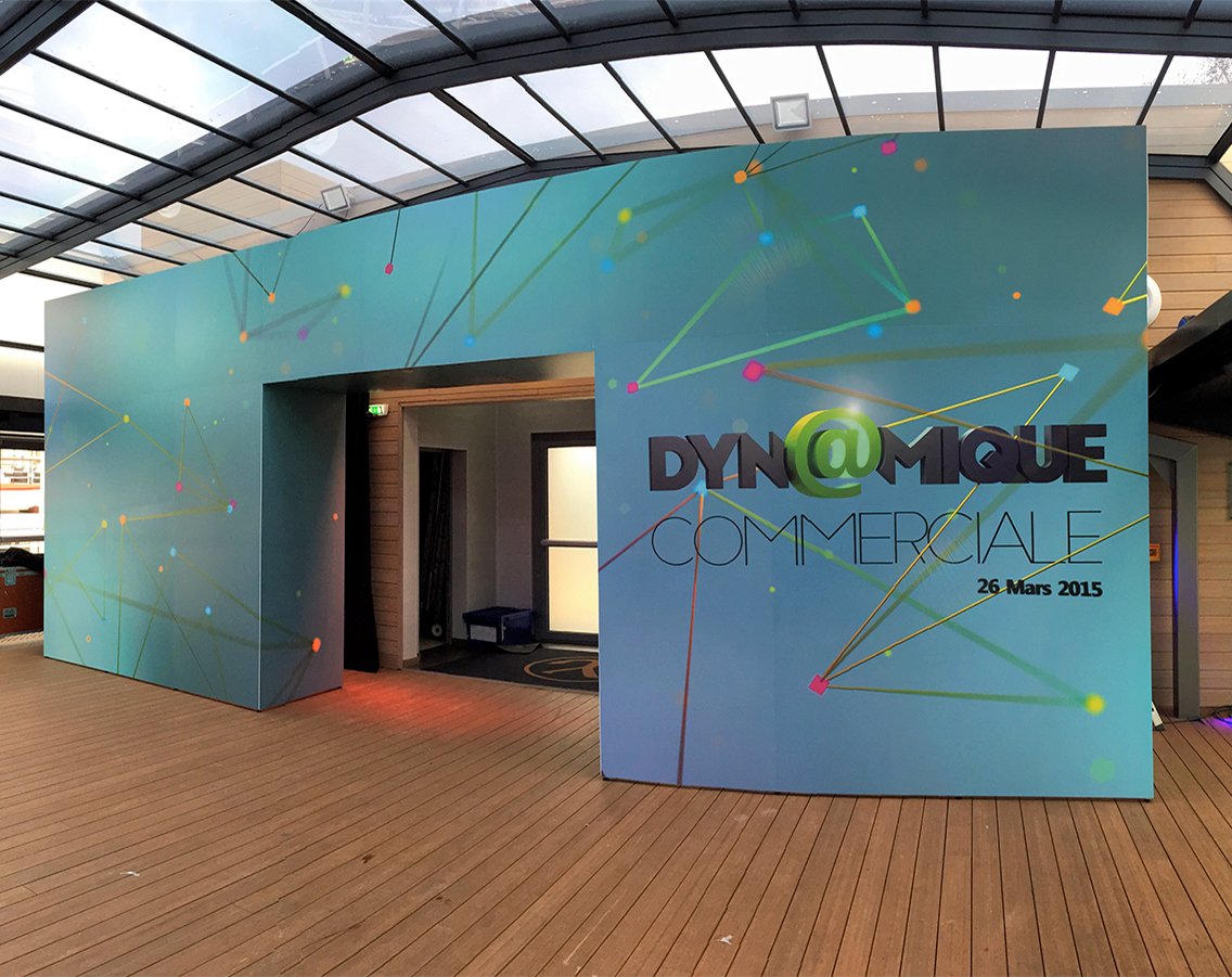 Nous fournissons tout le nécessaire pour la gestion de vos flux et votre communication : potelets directionnels, guide fils, fonds de scène, photocalls, supports et présentoirs de décor, ainsi que des arches et des cadres sur mesure pour tissu tendu.