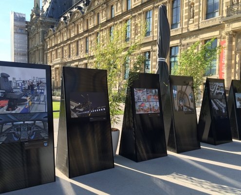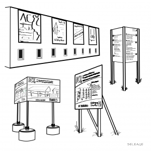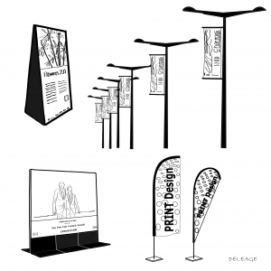 Avec ses pyramides ZIG ZAG (marque et modèle déposés), DELEAGE a développé sa propre gamme de totems extérieurs tout terrain permettant l’installation d’expositions ou d’animations événementielles.