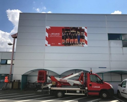 Coller un microperforé sur une tour de grande hauteur, sceller un panneau de chantier, fixer une plaque professionnelle dans la rue …