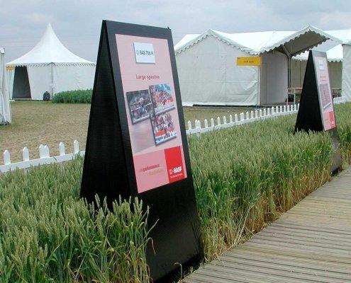 Vous pourrez aussi choisir nos TOTEMS EXTERIEURS PYRAMIDES ZIG ZAG parfaitement adaptés pour l’affichage extérieur mobile.