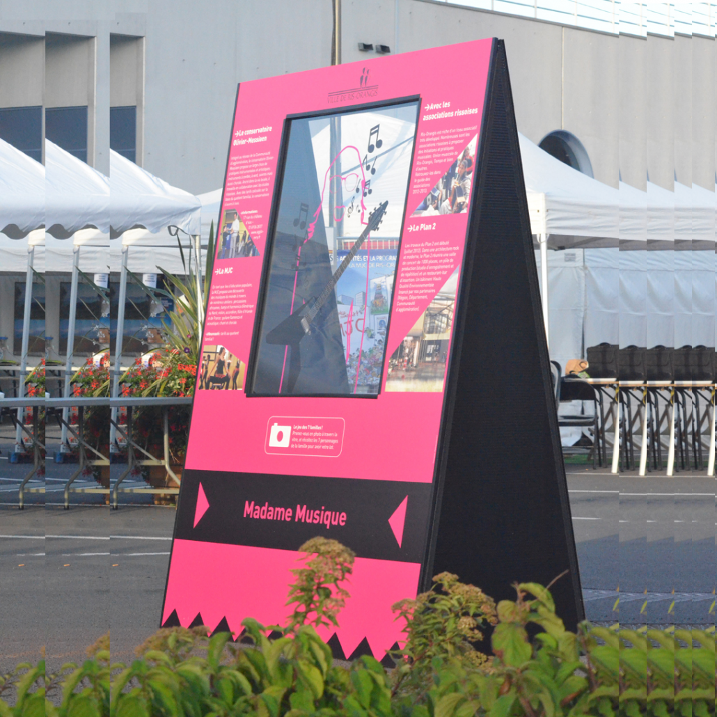 Il est possible d’utiliser ces totems pour réaliser un trompe l’œil photo en imprimant sur les panneaux transparents, permettant de créer une véritable attraction photographique identique à celle d’un passe tête.