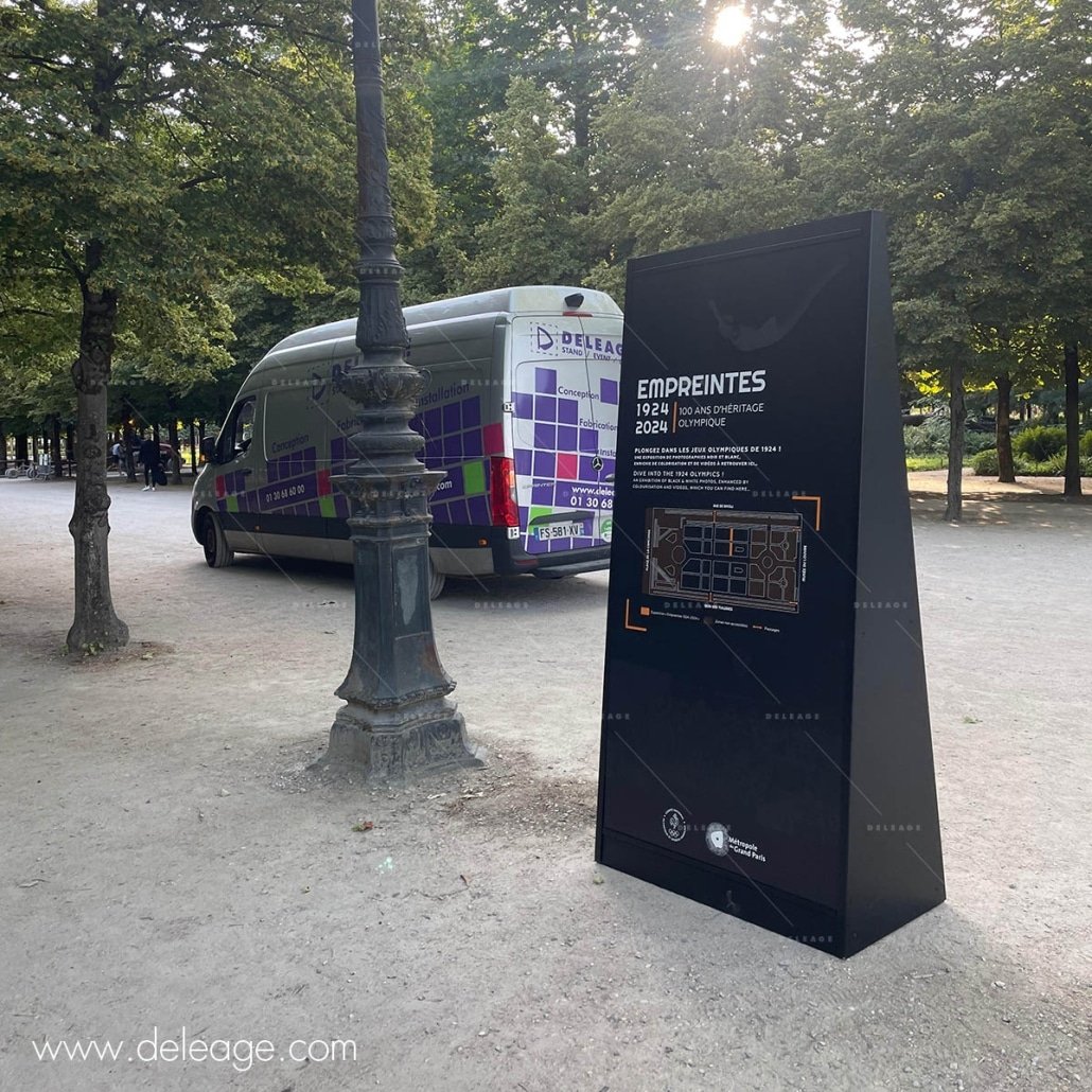 Les deux faces du totem sont équipés de 2 panneaux DIBOND 3 mm amovibles sur lesquels une impression UV directe est prévue.