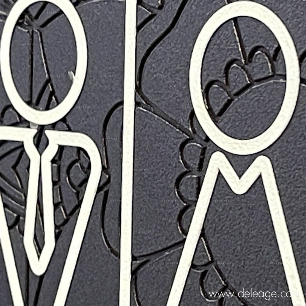 Pour la réalisation de panneaux avec un effet de relief en surface, l’encre ou le vernis est utilisé en couches successives jusqu’à l’obtention du relief exact souhaité.