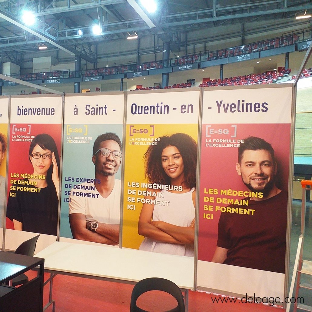 Habillage de cloison, cerce, comptoir, kakemono, tour, vitrine, stand parapluie, stand réutilisable …