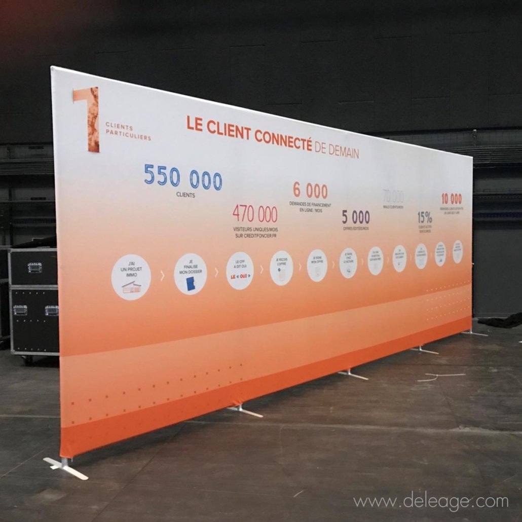 Habillage de cloison, cerce, comptoir, kakemono, tour, vitrine, stand parapluie, stand réutilisable …
