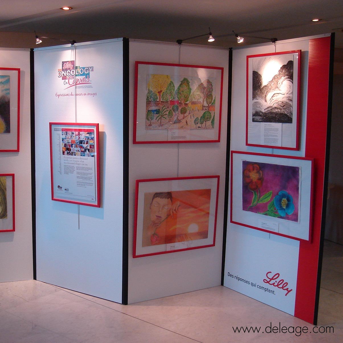 DELEAGE propose la location de panneaux et cloisons ZIG ZAG munis de rail permettant l’accrochage d’une exposition au moyen de cimaises et crochets dans tous les lieux n’autorisant pas le percement des murs ou ne possédant pas de dispositif d’accrochage.