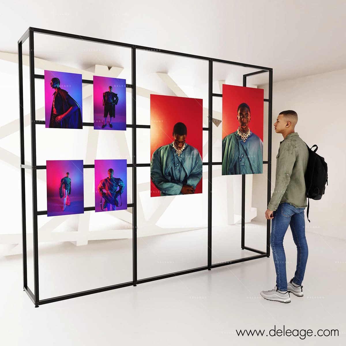 Si vous devez exposer dans un lieu où vous n’avez aucun moyen de suspendre vos tableaux, DELEAGE vous propose de réaliser vos propres structures d’exposition avec notre système T3 DECO.