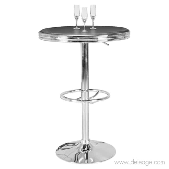 Cette magnifique table chromée avec plateau noir en simili cuir est issue du style utilisé dans les diner’s américain des années 60, 70.
