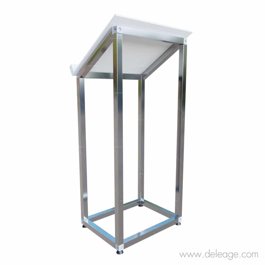 Ce pupitre est une structure modulaire de la gamme T3. Il se compose de profilés en aluminium qui s’assemblent sans outil sur des connecteurs à 6 directions. L’ensemble se monte en moins de 2 mn, sans outil et sans connaissance particulière.