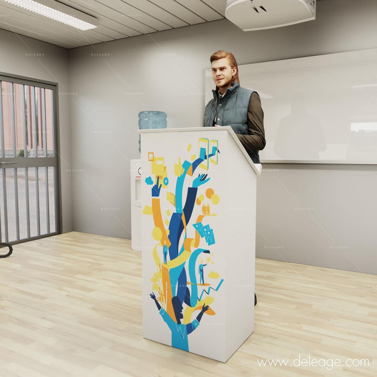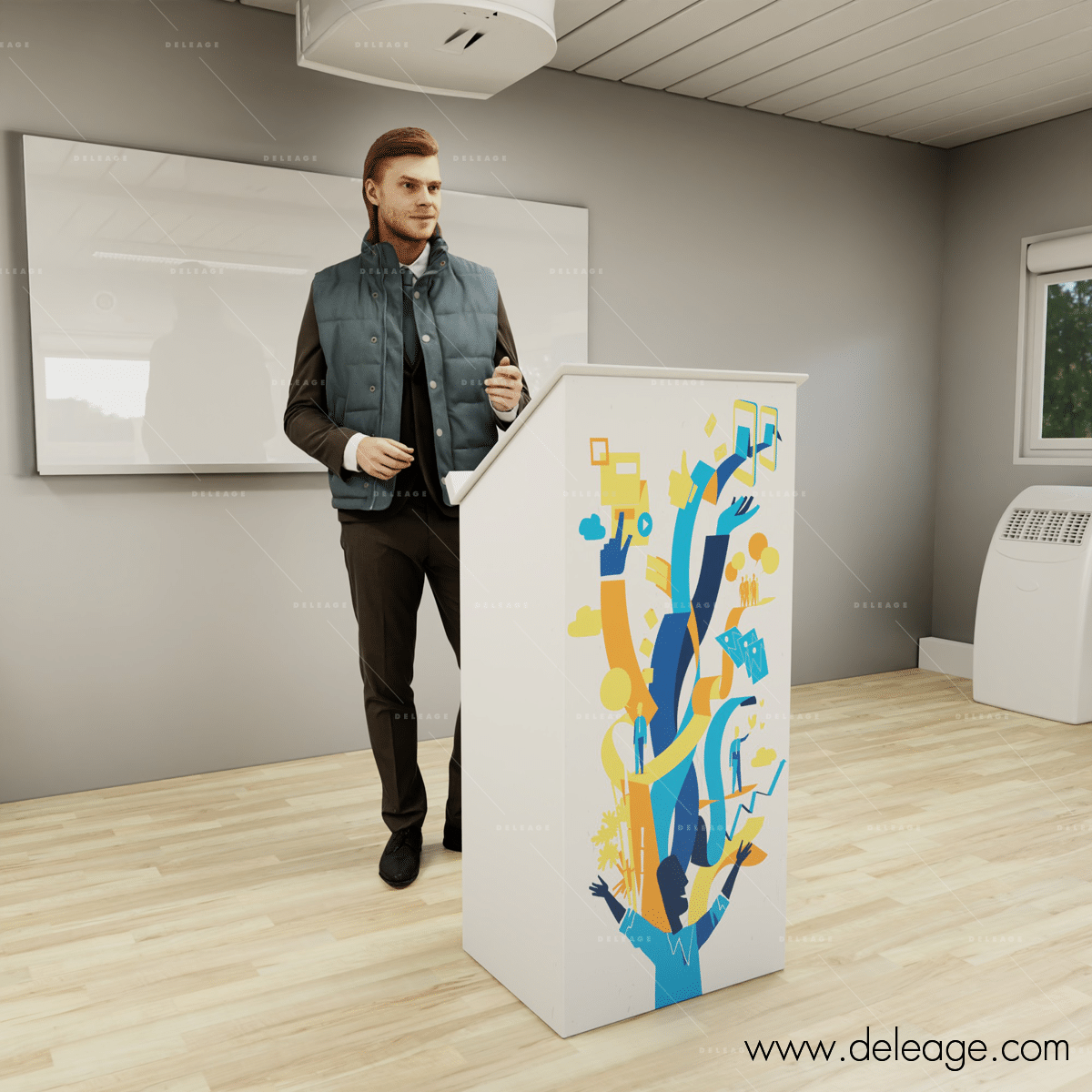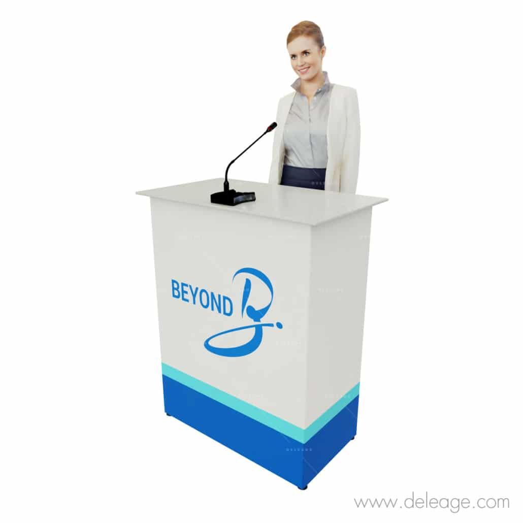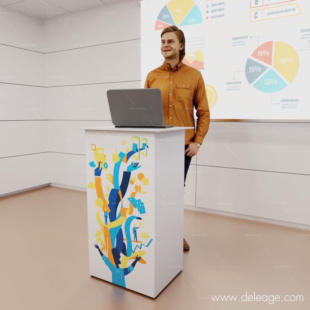 Pupitre de conférencier démontable avec personnalisation.