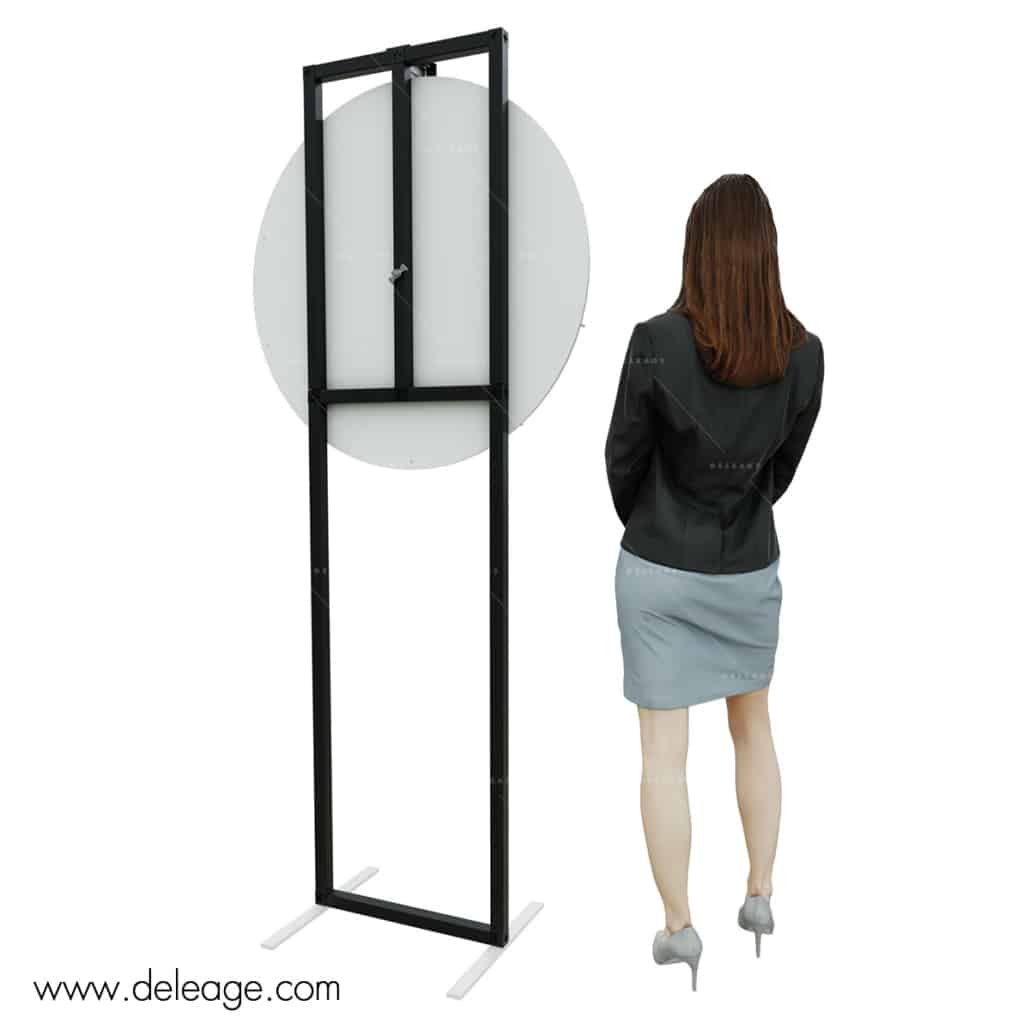Ce modèle de roue de la chance se compose d’un jeu de profilés aluminium, de deux pieds stabilisateurs et d’un plateau tournant sur roulement à billes.
