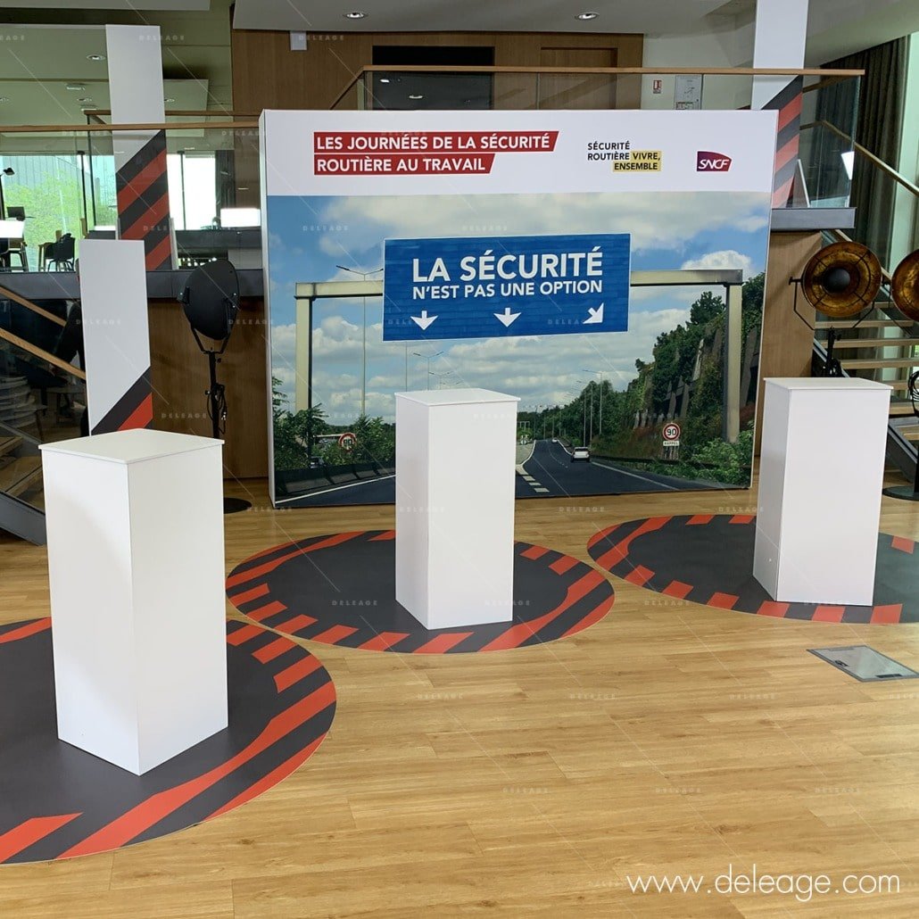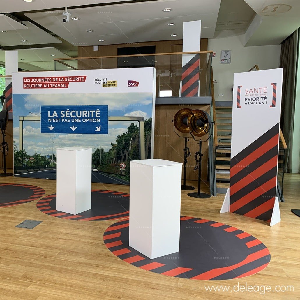 Habillage de cloison, cerce, comptoir, kakemono, tour, vitrine, stand parapluie, stand réutilisable …