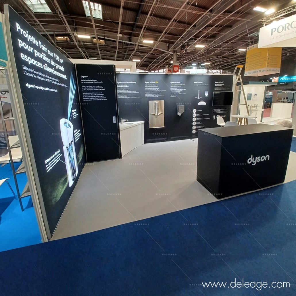 Habillage de cloison, cerce, comptoir, kakemono, tour, vitrine, stand parapluie, stand réutilisable …
