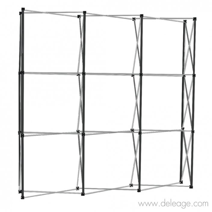 Le montage se fait en quelques minutes par une seule personne grâce à la simplicité des barres magnétiques de la structure et aux bandes aimantés sur le visuel.
