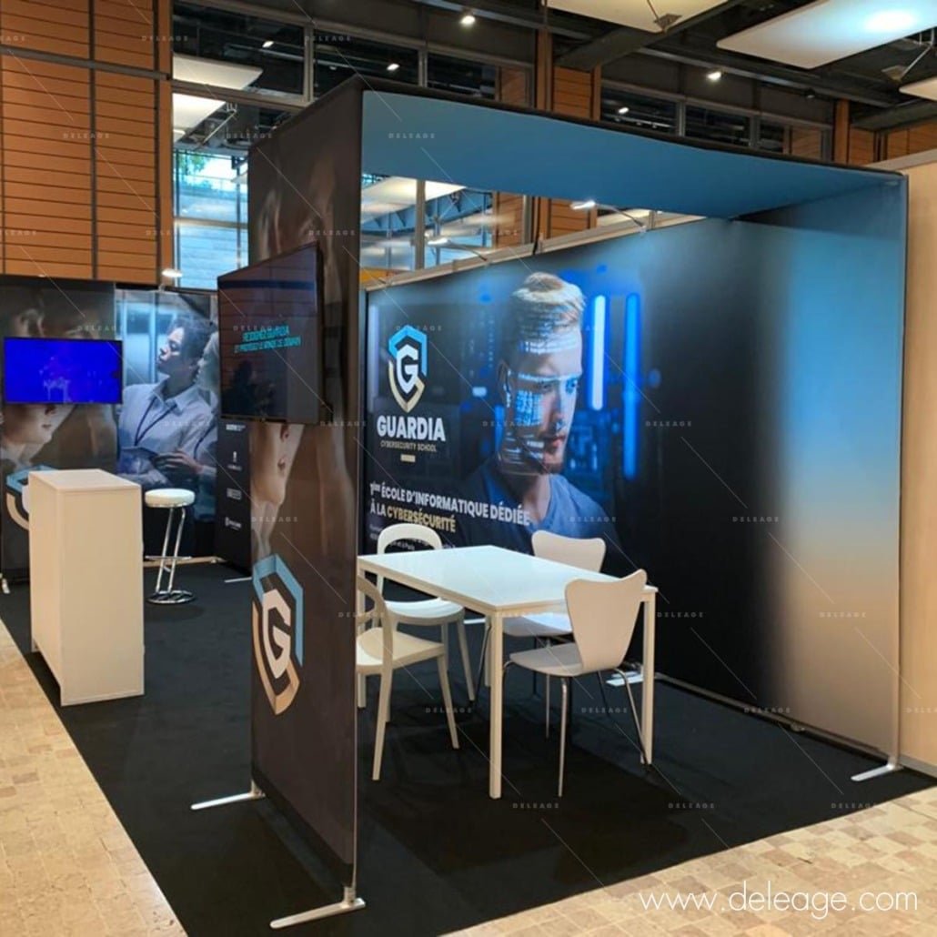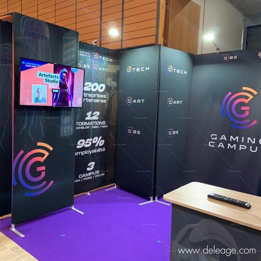 Habillage de cloison, cerce, comptoir, kakemono, tour, vitrine, stand parapluie, stand réutilisable …