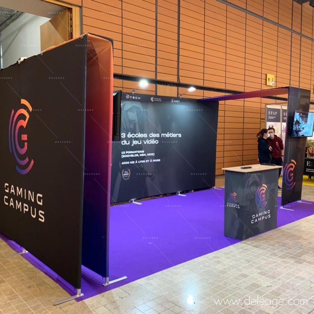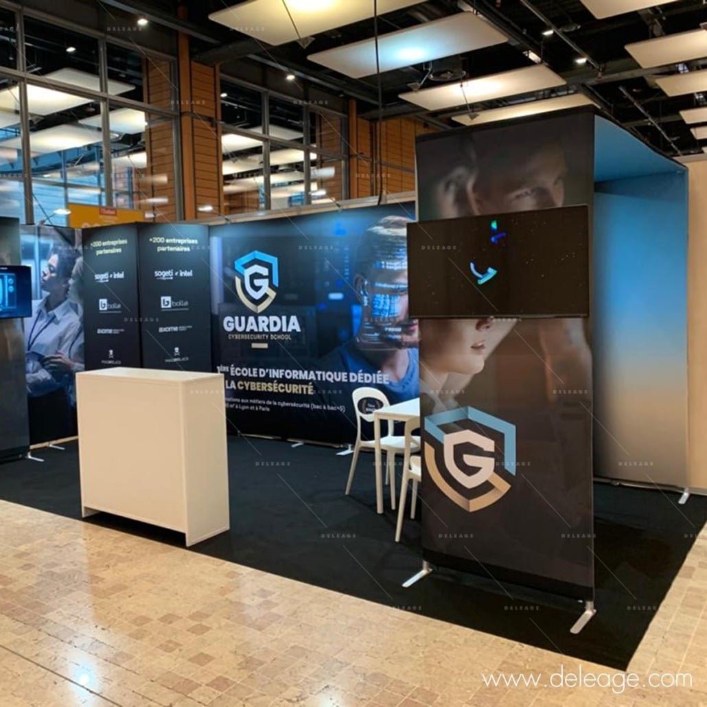 Habillage de cloison, cerce, comptoir, kakemono, tour, vitrine, stand parapluie, stand réutilisable …