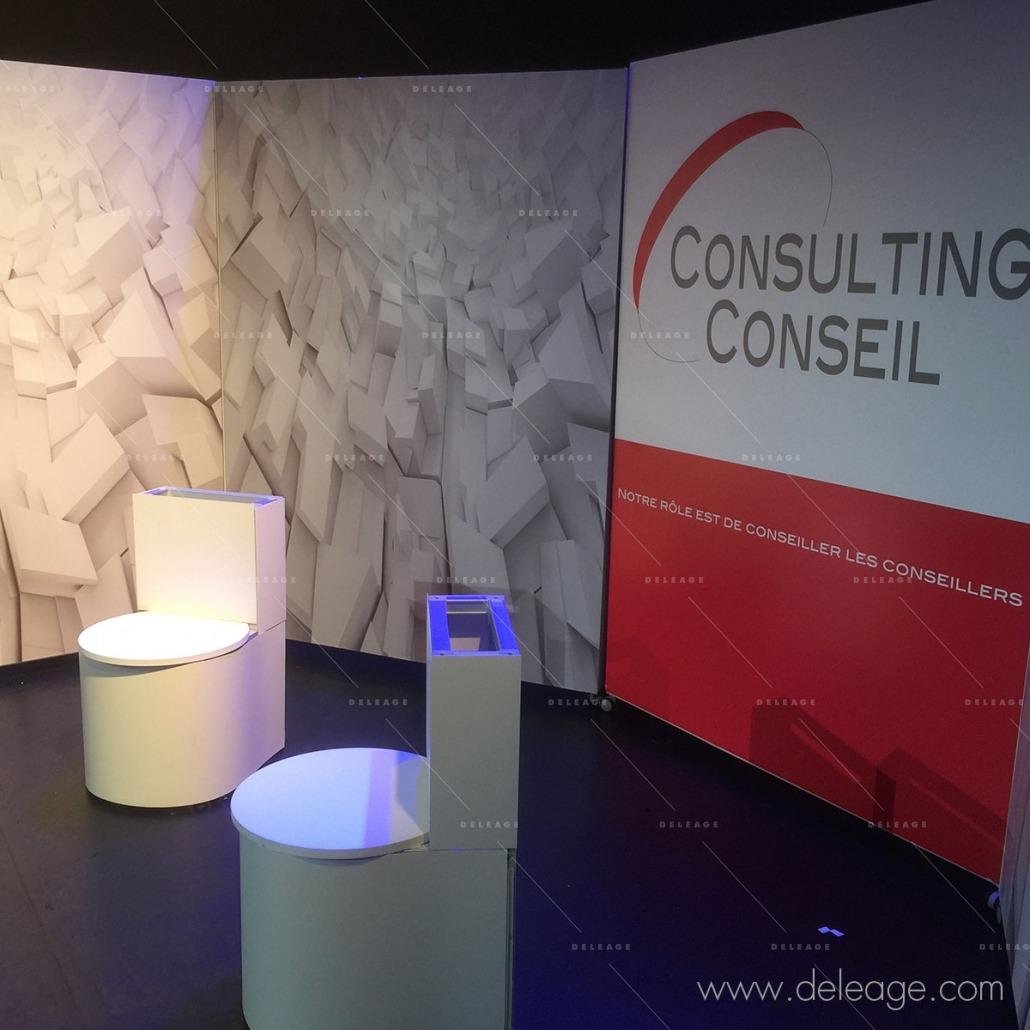 Pour la décoration de votre stand d’exposition DELEAGE propose une large gamme de solutions permettant de coïncider exactement à vos besoins et votre budget. Toutes nos offres sur la boutique en ligne sont réalisables sur-mesure. Nous vous invitons à prendre contact avec les professionnels de DELEAGE afin de bénéficier de précieux conseils pour la conception et la réalisation de vos futurs espaces professionnels. Que ce soit pour la réalisation d’un stand complet sur-mesure ou bien pour commander plus facilement une simple bâche ou un panneau imprimé, notre service commercial est là pour vous.