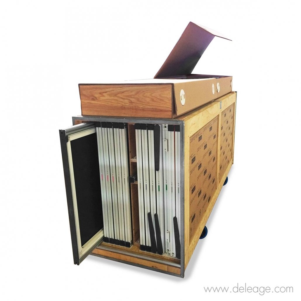 Ces modules peuvent être transportés avec les visuels en tissu déjà installés dessus et cette méthode offre un double intérêt :